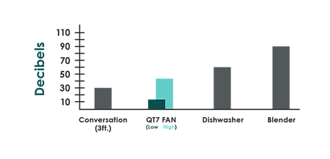Krmax QT7 tận dụng motor có hiệu suất cao nhưng chỉ tiêu thụ tối đa 22W cho tốc độ quạt cao nhất, tiết kiệm 4 lần so với những loại quạt truyền thống.